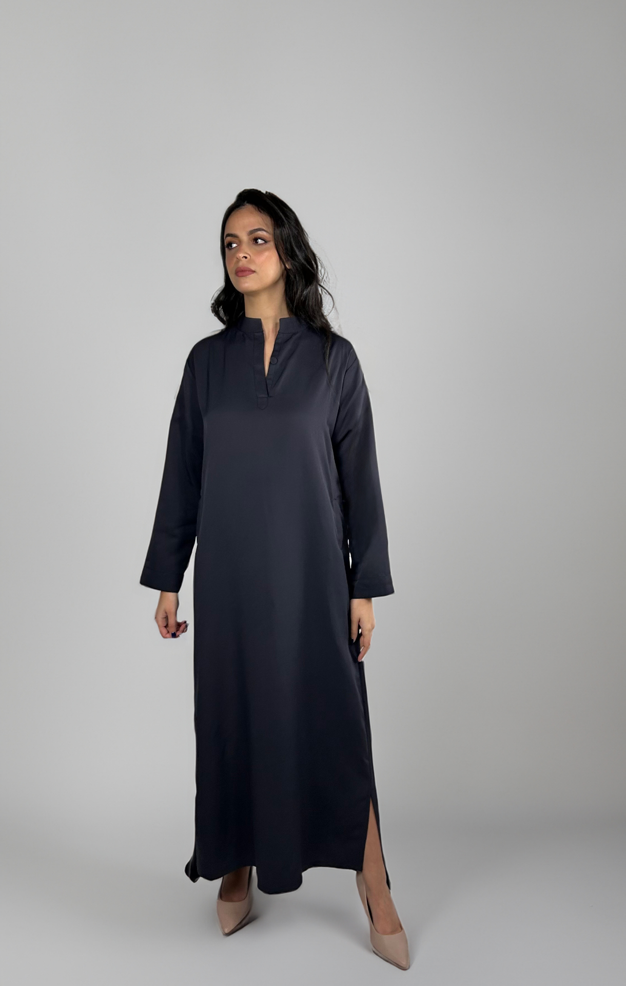 Viscous dark purple dress.